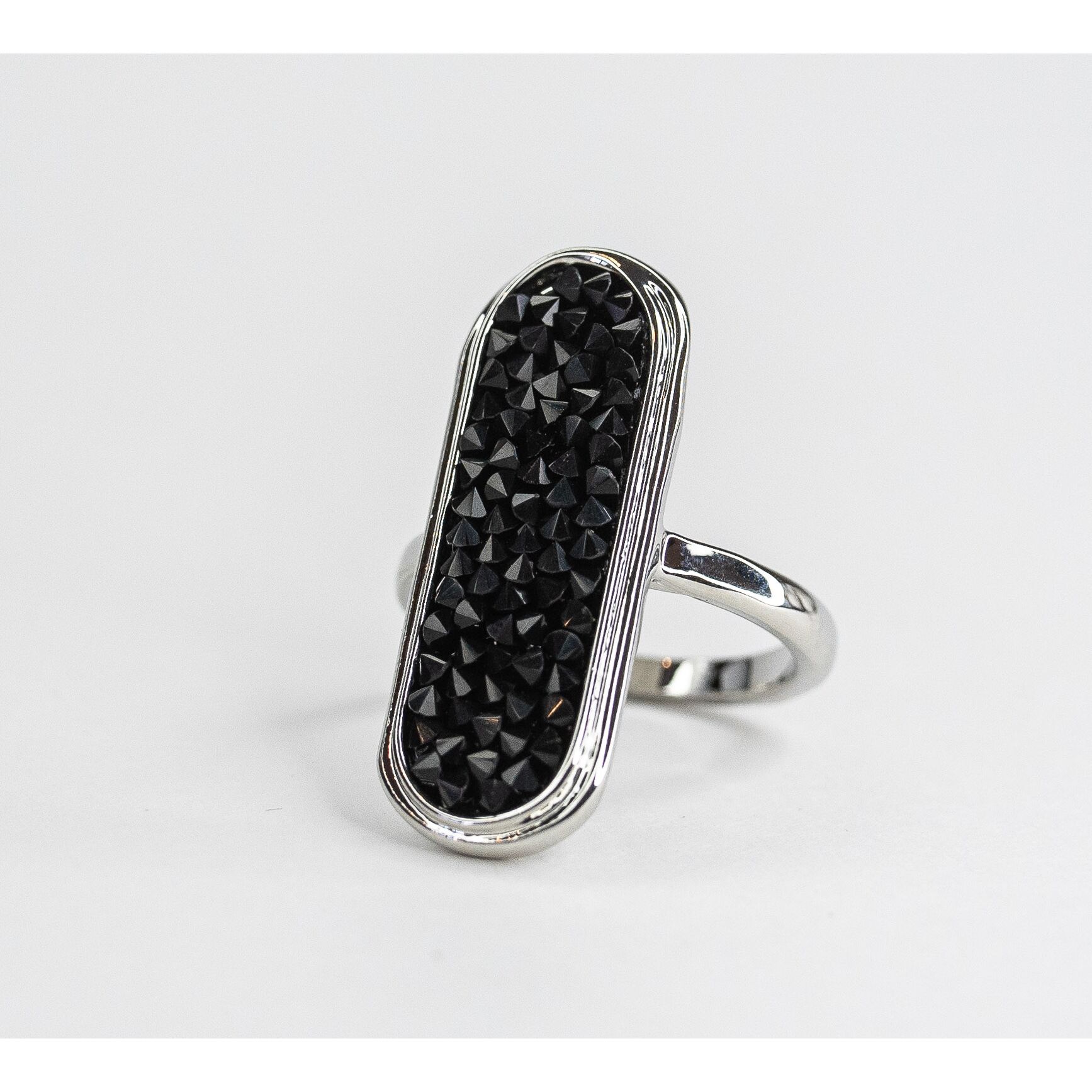 Кольцо женское из гипоаллергенного ювелирного сплава серого цвета. Вставка- ювелирное стекло черного цвета. Высота кольца-3,0см, ширина-1,2см. Размер-18,0.