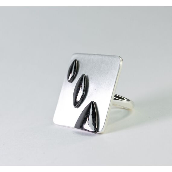 Кольцо из гипоаллергенного ювелирного сплава черного и серого цвета. Без вставок. Высота кольца-3см, ширина-3см. Размер-17,0.