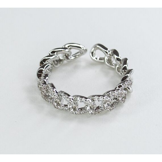 Кольцо женское из гипоаллергенного ювелирного сплава серого цвета. Вставка- фианит белого цвета. Высота кольца-0,7см, ширина-2см. Размер-17,0. Кольцо незамкнутое.