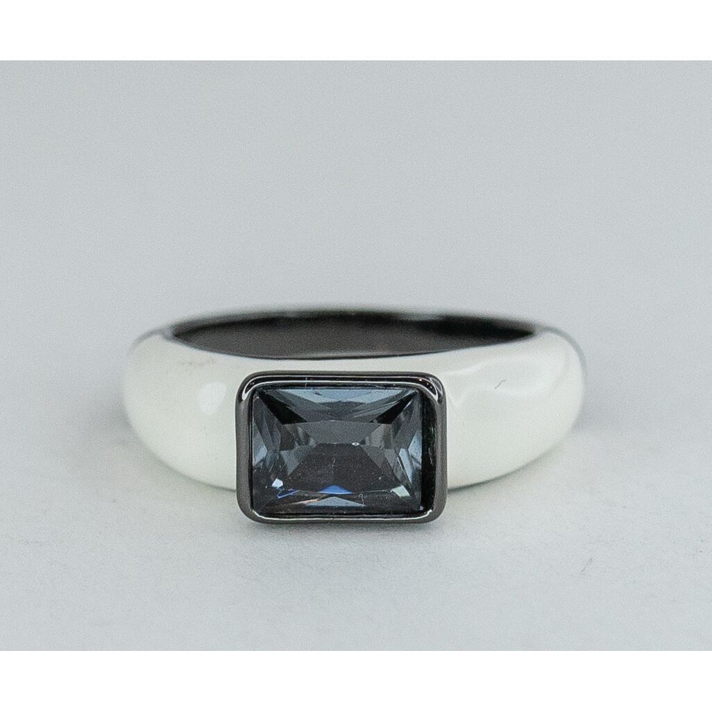 Кольцо женское из гипоаллергенного ювелирного сплава черного цвета. Покрытие эмалью белого цвета. Вставка- кварц, цвет- серый. Высота кольца- 1,0см, ширина- 2,0см. Размер- 17,0.
