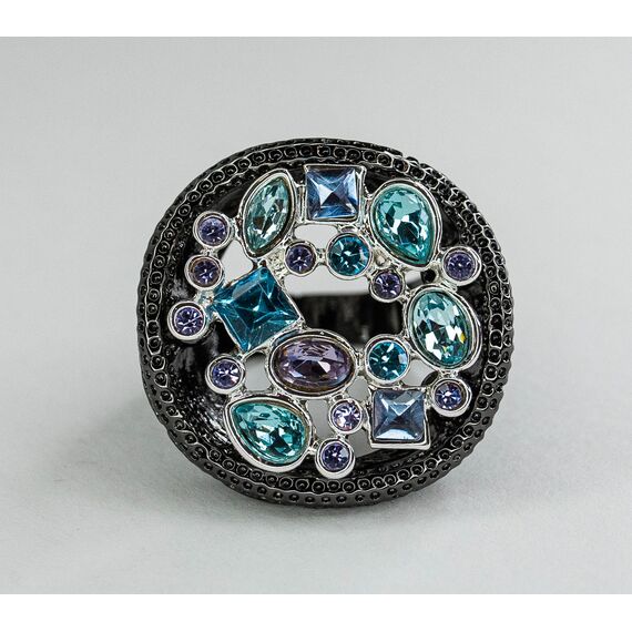 Кольцо из гипоаллергенного ювелирного сплава черного и серого цвета. Вставка- кварц, цвет- голубой, фиолетовый.Высота кольца-3см, ширина-3см. Размер-18,0.