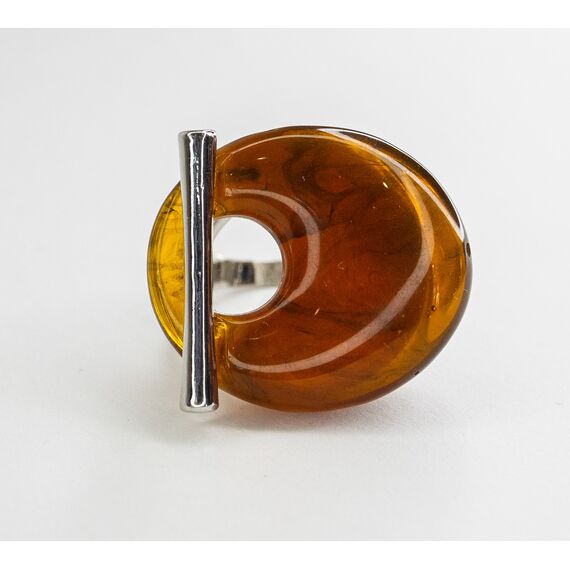 Кольцо из гипоаллергенного ювелирного сплава серого цвета. Вставка - пластик (имитация янтаря) коричневого цвета. Высота кольца - 2,7см, ширина - 3,5см. Размер - 18,0 .