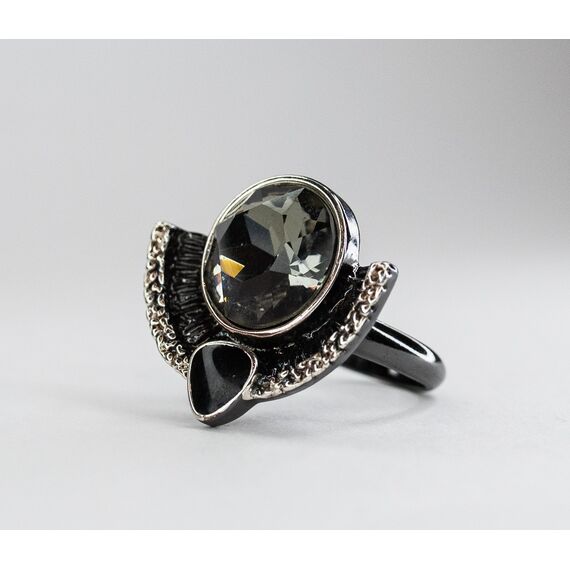 Кольцо из гипоаллергенного ювелирного сплава серого и черного цвета . Вставка- ювелирное стекло,цвет- серый. Высота кольца-2см. ширина-2,5см.Диаметр камня-1,5см. Размер-17,0.