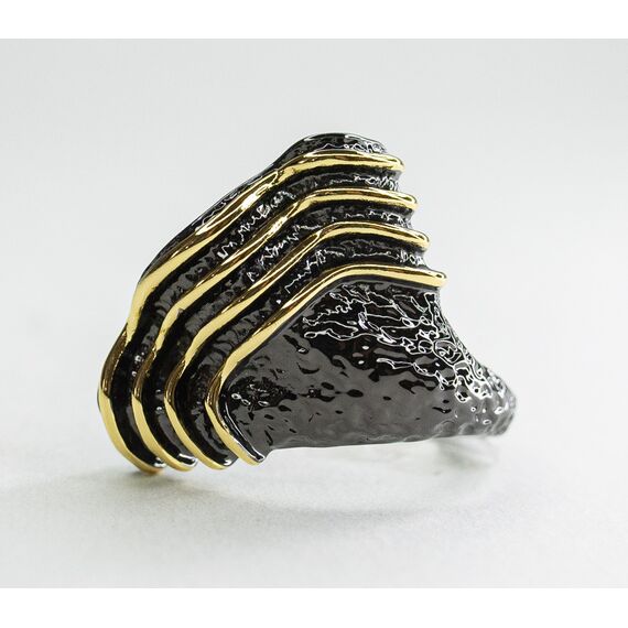 Кольцо из гипоаллергенного ювелирного сплава черного и желтого цвета. Без вставок. Высота кольца-2см, ширина-2,5см. Размер кольца-18,0.