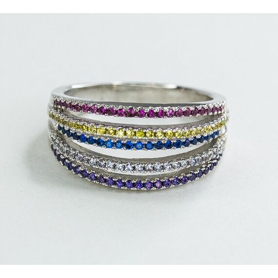 Кольцо женское из гипоаллергенного ювелирного сплава серого цвета. Вставка- фианит, цвет- микс. Высота кольца-1см, ширина-2см. Размер-17,0.