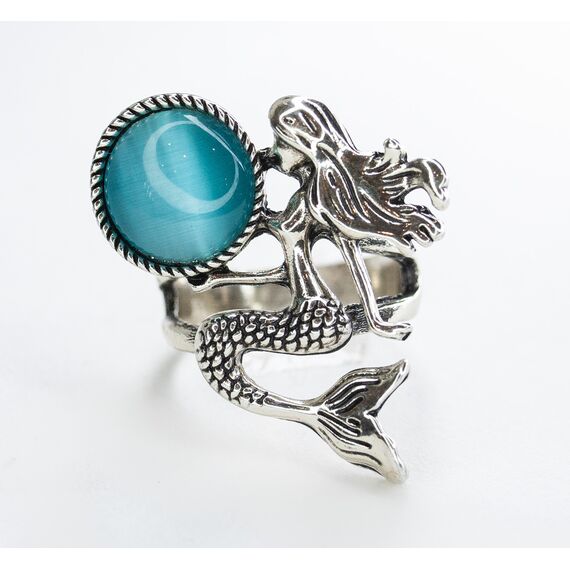 Кольцо женское из гипоаллергенного ювелирного сплава серого цвета. Вставка- улексит (кошачий глаз) голубого цвета. Высота кольца-3,5см, ширина-2,0см. Размер-18,0.