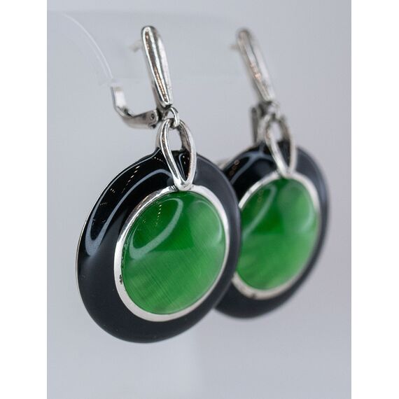 Кольцо женское из гипоаллергенного ювелирного сплава серого цвета с покрытием эмалью черного цвета. Вставка- улексит, цвет-зеленый. Высота кольца- 2,5см, ширина- 2,0см.Размер- 17,0.