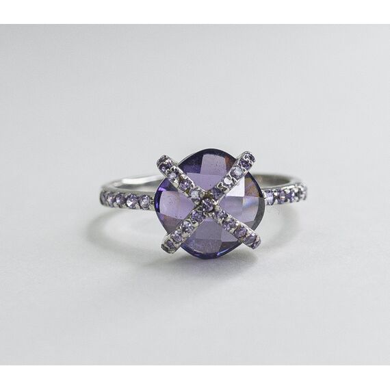 Кольцо женское из гипоаллергенного ювелирного сплава серого цвета. Вставка- ювелирное стекло фиолетового цвета. Высота кольца-1,2см, ширина-2см. Размер-18,0.