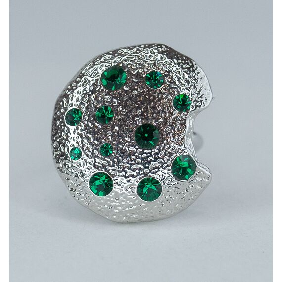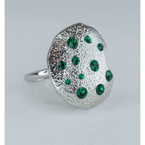 Кольцо из гипоаллергенного ювелирного сплава серого цвета. Вставка-ювелирное стекло зеленого цвета. Высота кольца- 2,5см, ширина-2,5см. Размер-17,0.