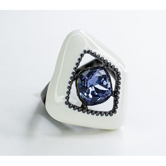 Кольцо женское из гипоаллергенного ювелирного сплава черного цвета. Покрытие эмалью, цвет- белый. Вставка- ювелирное стекло сиреневого цвета. Высота кольца-3см, ширина-2,5см. Размер-17,0.