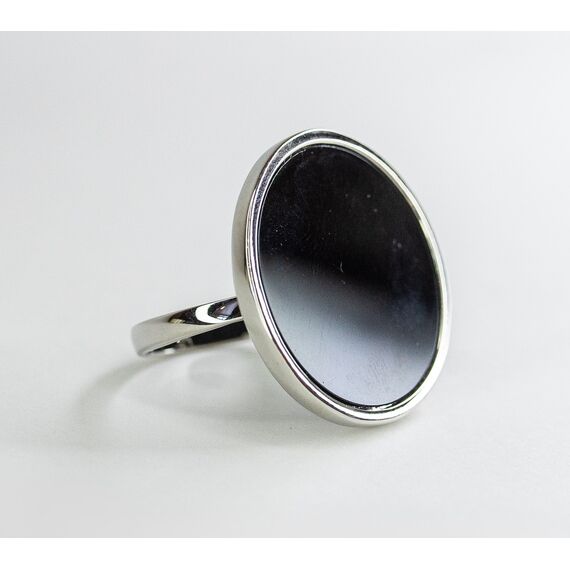 Кольцо женское из гипоаллергенного ювелирного сплава серого цвета. Без вставок. Покрытие эмалью черного цвета. Высота кольца-2,5см, ширина-2,5см. Размер-19,0.