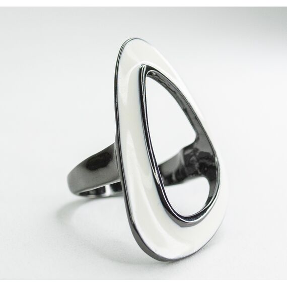 Кольцо женское из гипоаллергенного ювелирного сплава черного цвета. Покрытие эмалью белого цвета. Высота кольца-4,0см, ширина-2,0см. Размер-17,0.