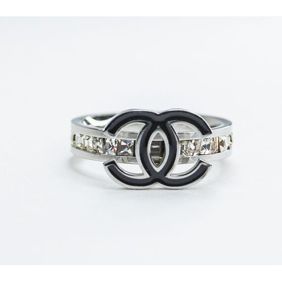 Кольцо из гипоаллергенного ювелирного сплава серого цвета. Вставка-ювелирное стекло, цвет- белый .Покрытие эмалью черного цвета. Высота кольца-1см, ширина-1,2см, размер-17,0.