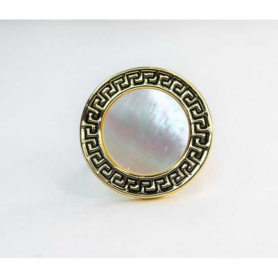 Кольцо из гипоаллергенного ювелирного сплава желтого цвета. Без вставок. Покрытие - эмаль белого цвета. Диаметр кольца-2,5см. Размер - 17,0.