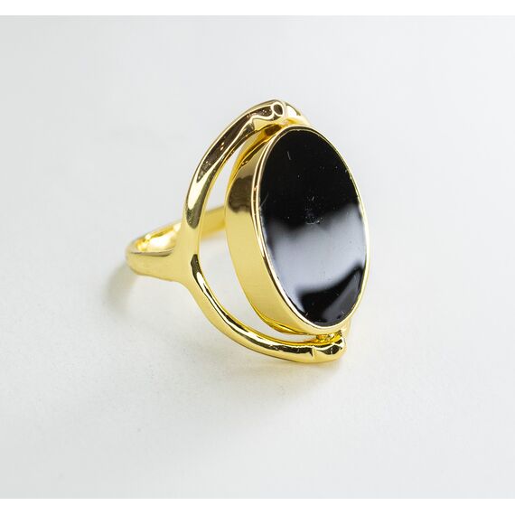 Кольцо из гипоаллергенного ювелирного сплава желтого цвета. Покрытие эмалью, цвет- белый и черный. Высота кольца-2,5см, ширина-2см. Размер-18,0.