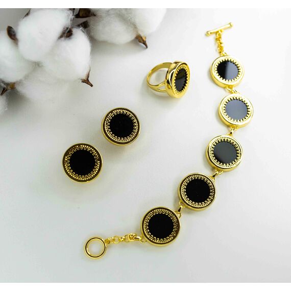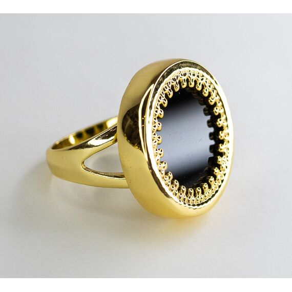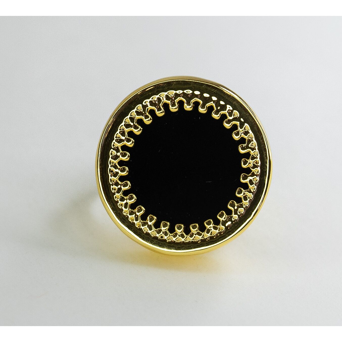 Кольцо женское из гипоаллергенного ювелирного сплава желтого цвета.Покрытие эмалью, цвет- черный. Высота кольца-2см, ширина-2см. Размер-17,0.