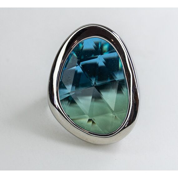 Кольцо женское из гипоаллергенного ювелирного сплава серого цвета. Вставка- ювелирное стекло зеленого и синего цвета. Высота кольца-3см, ширина-2см. Размер-17,0.