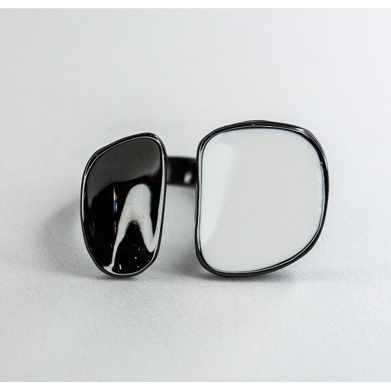 Кольцо женское из гипоаллергенного ювелирного сплава черного цвета.Покрытие эмалью, цвет- белый. Высота кольца-1,6см, ширина-3см. Размер-18,0.