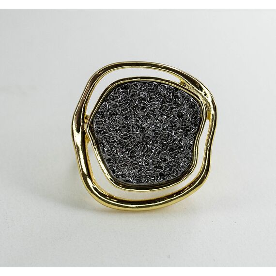 Кольцо из гипоаллергенного ювелирного сплава серого и желтого цвета.Без вставок. Высота кольца-3см, ширина-3см.Размер-18,0.