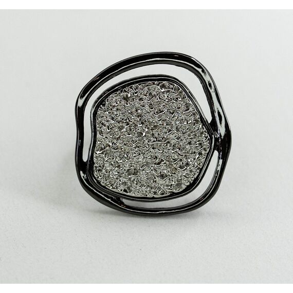 Кольцо из гипоаллергенного ювелирного сплава серого и черного цвета.Без вставок. Высота кольца-3см, ширина-3см.Размер-17,0.