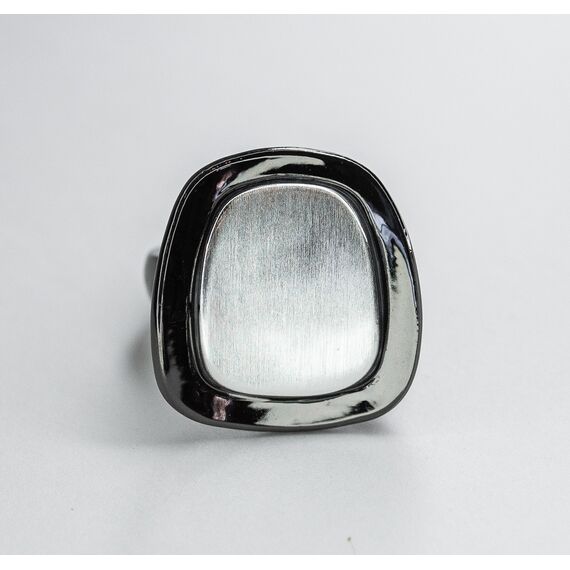 Кольцо женское из гипоаллергенного ювелирного сплава серого и черного цвета. Без вставок. Высота кольца-2см, ширина -2см. Размер-18,0.