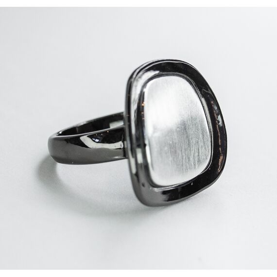 Кольцо женское из гипоаллергенного ювелирного сплава серого и черного цвета. Без вставок. Высота кольца-2см, ширина -2см. Размер-17,0.