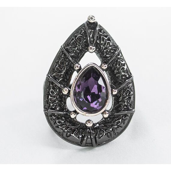 Кольцо женское из гипоаллергенного ювелирного сплава черного и серого цвета. Вставка- ювелирное стекло фиолетового цвета. Высота кольца-2,5см, ширина-2см. Размер-18,0.