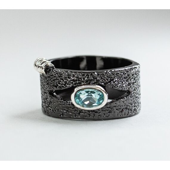 Кольцо женское из гипоаллергенного ювелирного сплава черного и серого цвета. Вставка- ювелирное стекло голубого цвета. Высота кольца--1см, ширина -2,2см. размер-18,0.