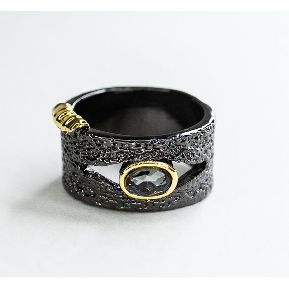 Кольцо женское из гипоаллергенного ювелирного сплава черного и желтого цвета. Вставка- ювелирное стекло коричневого цвета. Высота кольца--1см, ширина -2,2см. размер-17,0.