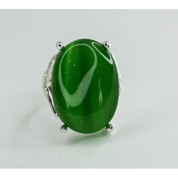 Кольцо женское из гипоаллергенного ювелирного сплава серого цвета. Вставка- улексит( кошачий глаз) , цвет- зеленый. Высота кольца-2,5см, ширина-2см. Размер-18,0.