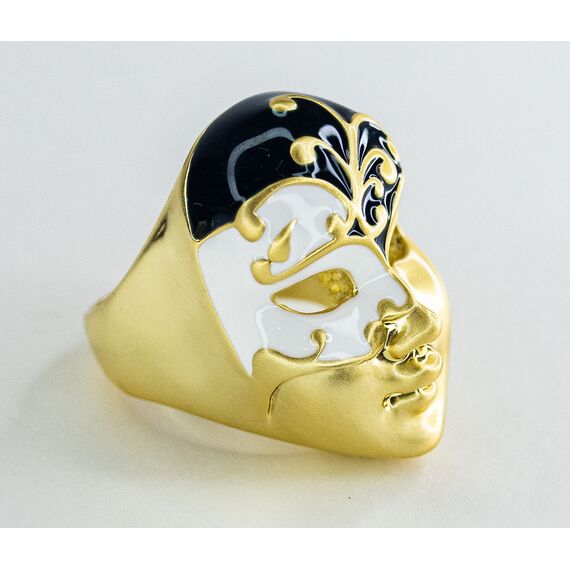 Кольцо из гипоаллергенного ювелирного сплава черного и желтого цвета. Без вставок. Покрытие- эмаль белого и черного цвета. Размер кольца-18,0. Высота кольца-2,5см. ширина-2см.