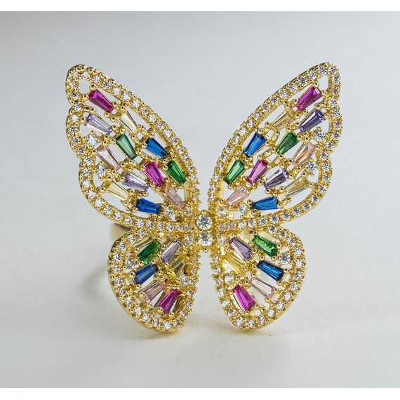 Кольцо женское из гипоаллергенного ювелирного сплава желтого цвета. Вставка- ювелирное стекло белого, красного, синего, зеленого, желтого цвета. Высота кольца-3см, ширина-3см. Размер-17,0.