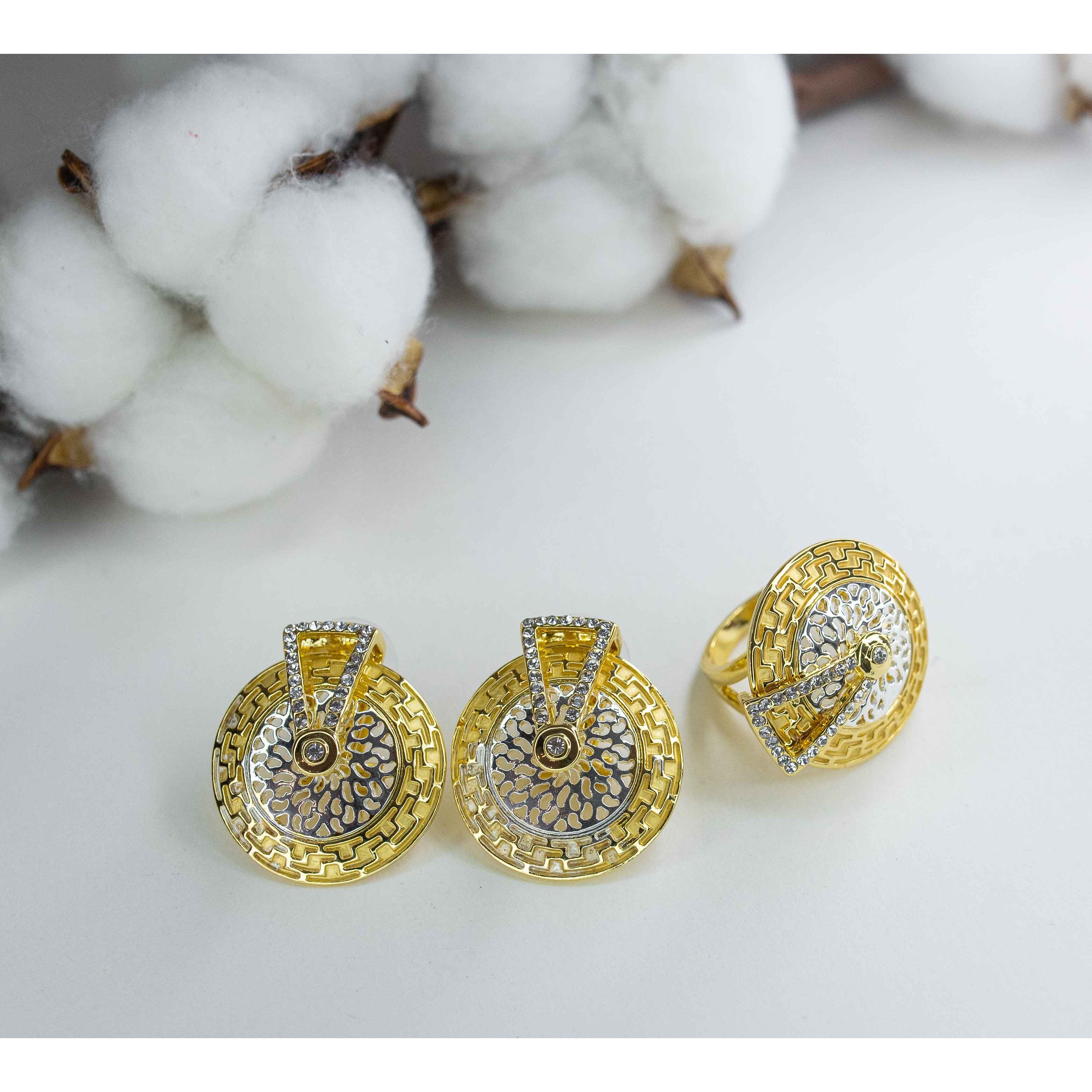 Кольцо женское из гипоаллергенного ювелирного сплава серого и желтого цвета. Вставка- ювелирное стекло белого цвета. Покрытие эмалью желтого цвета. Высота кольца-2,5см, ширина-2,5см. Размер-19,0.