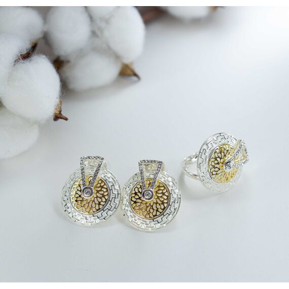 Кольцо женское из гипоаллергенного ювелирного сплава серого и желтого цвета. Вставка- ювелирное стекло белого цвета. Покрытие эмалью белого цвета. Высота кольца-2,5см, ширина-2,5см. Размер-19,0.