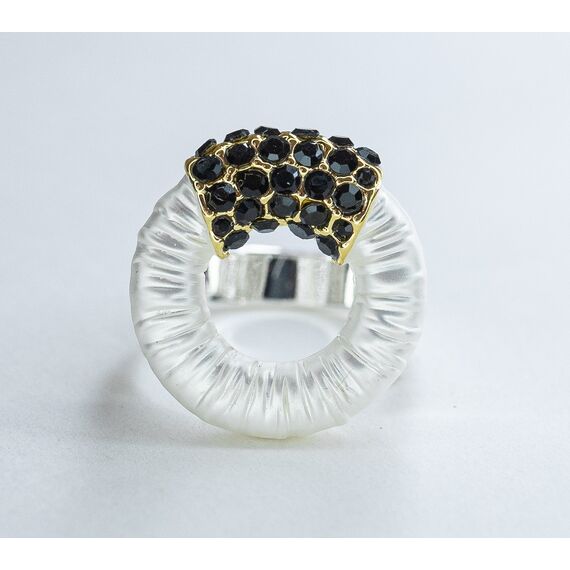 Кольцо женское из гипоаллергенного ювелирного сплава серого и желтого цвета. Вставка- ювелирное стекло черного цвета.Высота кольца-2см, ширина-2см. Размер-18,0.