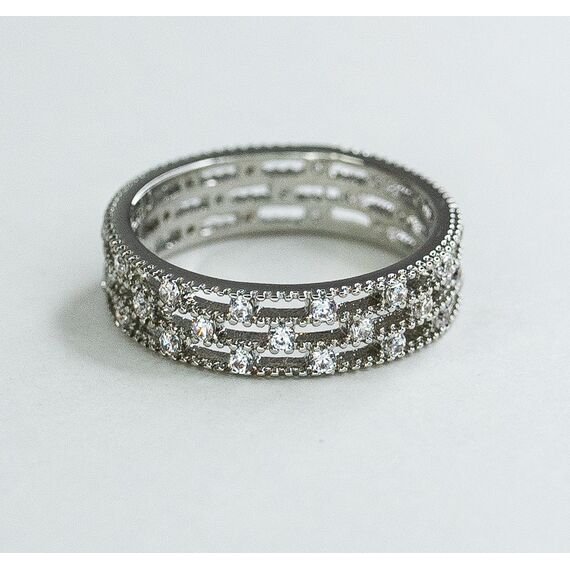 Кольцо женское из гипоаллергенного ювелирного сплава серого цвета. Вставка- фианит белого цвета. Высота кольца-0,7см, ширина-2см. Размер-16,0.
