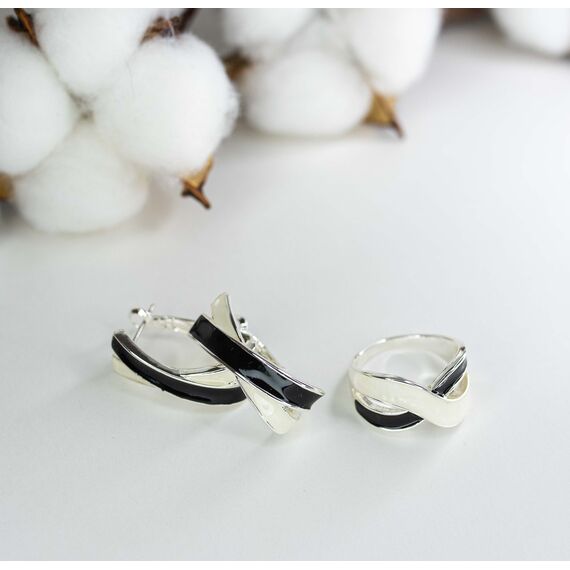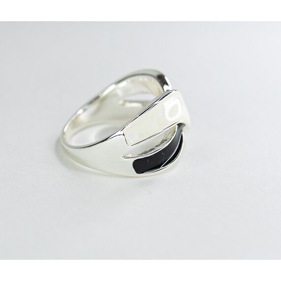 Кольцо женское из гипоаллергенного ювелирного сплава серого цвета. Без вставок. Покрытие эмалью белого и черного цвета. Высота кольца -1,5см, ширина -2,5см. Размер-19,0.