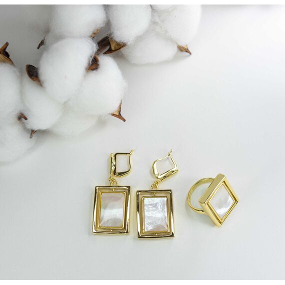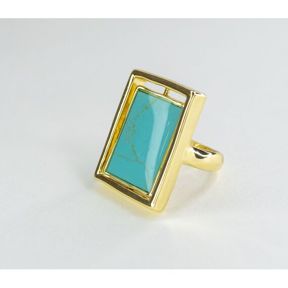 Кольцо женское из гипоаллергенного ювелирного сплава желтого цвета. Вставка - перламутр белого цвета и бирюза бирюзового цвета. Высота кольца-2,5см, ширина-2см. Размер-17,0.