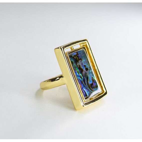 Кольцо женское из гипоаллергенного ювелирного сплава желтого цвета. Вставка - перламутр радужного и белого цвета. Высота кольца-2,5см, ширина-2см. Размер-18,0.