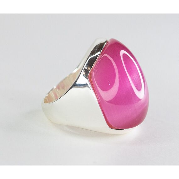 Кольцо женское из гипоаллергенного ювелирного сплава серого цвета. Вставка- улексит ( кошачий глаз) розового цвета. Высота кольца-2,5см, ширина-2,5см. Размер-19,0.