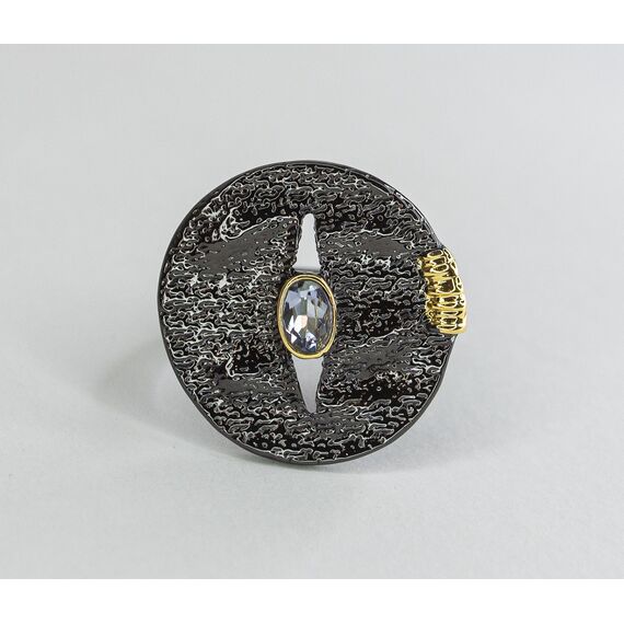 Кольцо женское из гипоаллергенного ювелирного сплава черного и желтого цвета. Вставка- ювелирное стекло сиреневого цвета. Высота кольца-2,5см, ширина-2,5см. Размер-18,0.