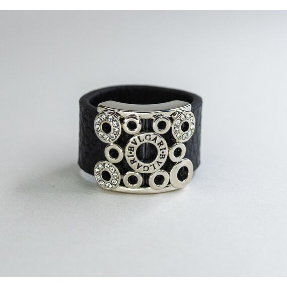 Кольцо женское из гипоаллергенного ювелирного сплава серого цвета и кожаного ремешка черного цвета.Вставка- цирконы белого цвета. Высота кольца-1,5см, ширина-2,0см. Размер-20,0.