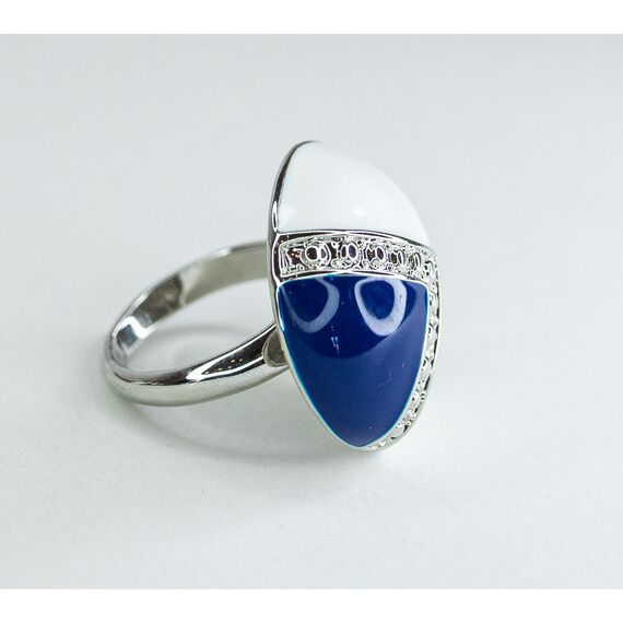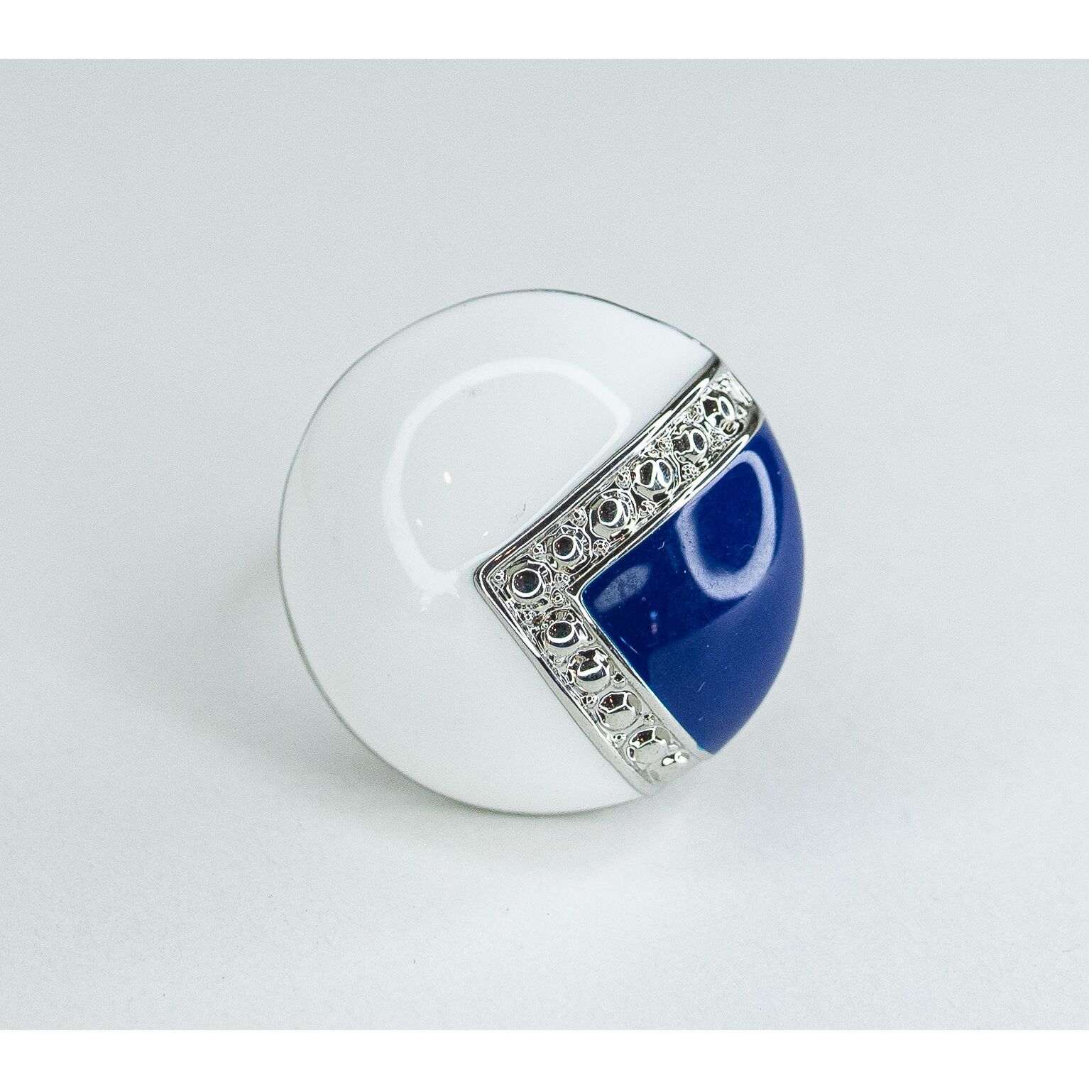 Кольцо женское из гипоаллергенного ювелирного сплава серого цвета. Покрытие эмалью белого и синего цвета. Высота кольца-2,5см. ширина-2,5см. Размер-17,0.