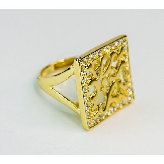 Кольцо женское из гипоаллергенного ювелирного сплава желтого цвета. Вставка- цирконы, цвет- белый. Высота кольца-2,5см, ширина-2,5см. Размер-17,0.