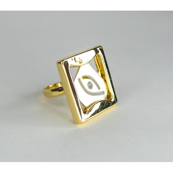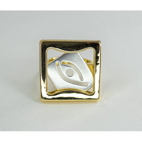 Кольцо из гипоаллергенного ювелирного сплава желтого и серого цвета. Без вставок. Высота кольца-2,5см, ширина-2,5см. Размер-17,0.