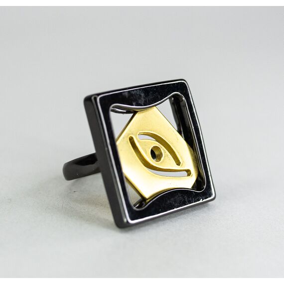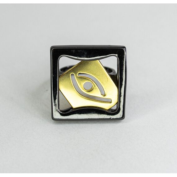 Кольцо женское из гипоаллергенного ювелирного сплава желтого и черного цвета. Без вставок. Высота кольца-2,0см, ширина-2,0см. Размер-18,0.