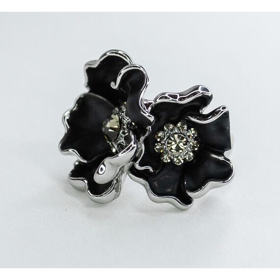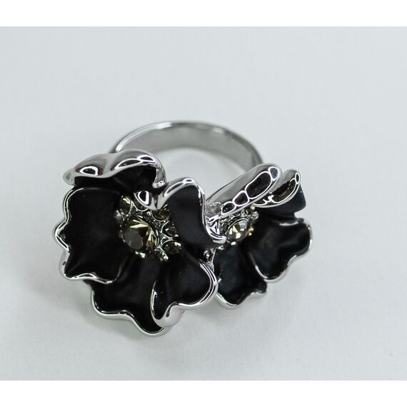 Кольцо женское из гипоаллергенного ювелирного сплава серого цвета. Вставка- ювелирное стекло серого цвета. Покрытие эмалью черного цвета. Высота кольца--2,0см, ширина-3,0см. Размер-17,0.