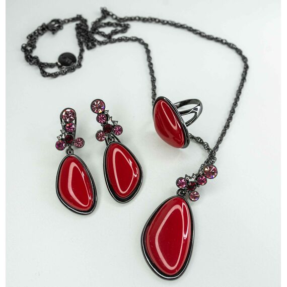 Кольцо женское из гипоаллергенного ювелирного сплава черного цвета. Высота кольца- 3,0см, ширина- 2,0см. Вставка- эпоксидная смола, цвет- красный. Размер-19,0.