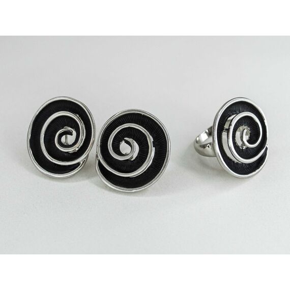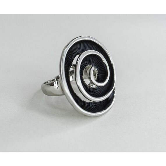 Кольцо женское из гипоаллергенного ювелирного сплава черного и серого цвета. Без вставок. Высота кольца-3,0см, ширина-2,5см. Размер-17,0.