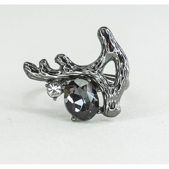 Кольцо женское из гипоаллергенного ювелирного сплава черного цвета. Вставка- ювелирное стекло, цвет- белый, серый. Высота кольца-2,0см, ширина-2,0см. Размер-17,0.